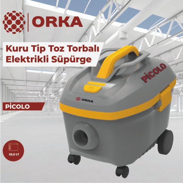 ORKA PICOLO, kuru tip temizlik için tasarlanmış, kompakt ve güçlü bir elektrikli süpürgedir. Yüksek motor gücü ve etkili filtre sistemi ile otel, konferans salonu, sinema, ofis ve ev gibi alanlarda pratik temizlik sağlar. Hafif yapısı ve döner tekerlekleri sayesinde kolay taşınır ve manevra kabiliyeti yüksektir.